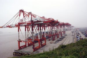 Die aufgrund der verhänten Zölle liegengebliebene Fracht im Hafen von Shanghai soll nach den Wünschen Donald Trumps China in die Knie zwingen. (© Bruno Corpet, CC BY-SA 3.0)